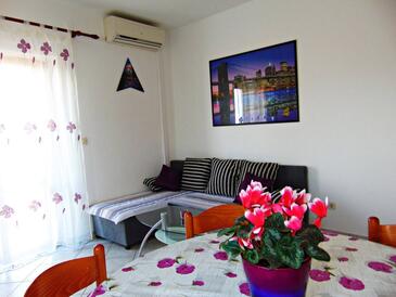 Ferienwohnung bietet Platz für 4 Gäste. Die Betten sind in Schlafzimmern, die es 2 gibt, innerhalb einer Gesamtfläche von 53m2, angeordnet. Die Gäste haben eine eigene Terrasse zur Verfügung, auf der sie in warmen Sommernächten genießen können. Das Apartment bietet Meerblick. Es ist erlaubt, Speisen auf dem Gemeinschafts-Grill vorzubereiten. In der Unterkunftseinheit besteht die Möglichkeit des Mitbringens von Haustieren gegen Aufpreis.