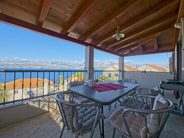 Ferienwohnung bietet Platz für 7 Gäste. Die Betten sind in Schlafzimmern, die es 3 gibt, und in Wohnzimmer, innerhalb einer Gesamtfläche von 71m2, angeordnet. Die Gäste haben eine eigene Terrasse zur Verfügung, auf der sie in warmen Sommernächten genießen können. Das Apartment bietet Meerblick. Es ist erlaubt, Speisen auf dem Gemeinschafts-Grill vorzubereiten. In der Unterkunftseinheit besteht die Möglichkeit des Mitbringens von Haustieren gegen Aufpreis.