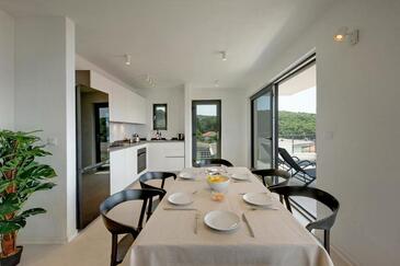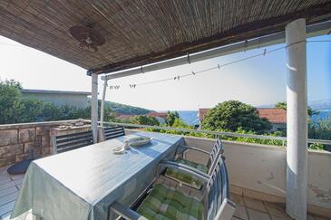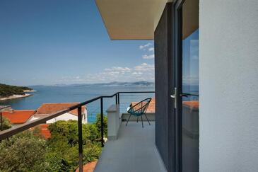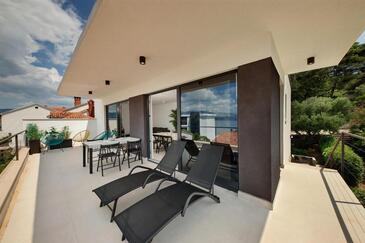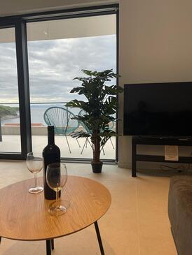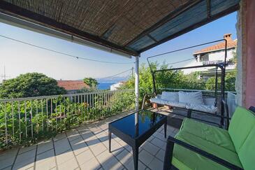 Ferienwohnung bietet Platz für 4 Gäste. Die Betten sind in Schlafzimmern, die es 2 gibt, innerhalb einer Gesamtfläche von 46m2, angeordnet. Die Gäste haben eine eigene Terrasse zur Verfügung, auf der sie in warmen Sommernächten genießen können. Das Apartment bietet Meerblick. Es ist erlaubt, Speisen auf dem Gemeinschafts-Grill vorzubereiten.