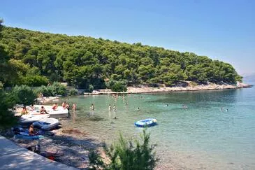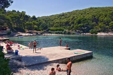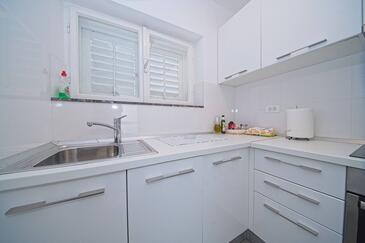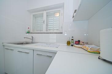 Ferienwohnung bietet Platz für 4 Gäste. Die Betten sind in Schlafzimmern, die es 2 gibt, innerhalb einer Gesamtfläche von 46m2, angeordnet. Die Gäste haben eine eigene Terrasse zur Verfügung, auf der sie in warmen Sommernächten genießen können. Das Apartment bietet Meerblick. Es ist erlaubt, Speisen auf dem Gemeinschafts-Grill vorzubereiten.
