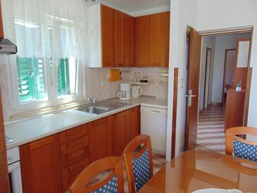 Ferienwohnung bietet Platz für 8 Gäste. Die Betten sind in Schlafzimmern, die es 3 gibt, und in Wohnzimmer, innerhalb einer Gesamtfläche von 77m2, angeordnet. Die Gäste haben eine eigene Terrasse zur Verfügung, auf der sie in warmen Sommernächten genießen können. Es ist erlaubt, Speisen auf dem Gemeinschafts-Grill vorzubereiten. In der Unterkunftseinheit besteht die Möglichkeit des Mitbringens von Haustieren gegen Aufpreis.