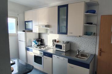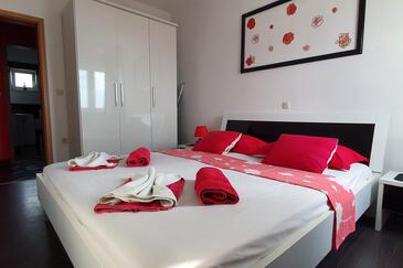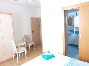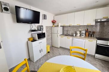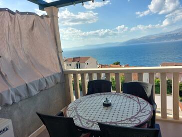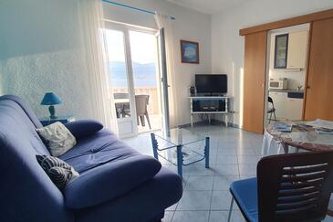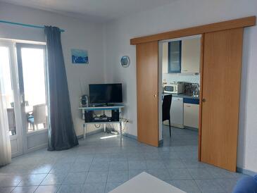 Ferienwohnung bietet Platz für 3 Gäste. Die Betten sind in Schlafzimmern, die es 1 gibt, und in Wohnzimmer, innerhalb einer Gesamtfläche von 43m2, angeordnet. Die Gäste haben eine eigene Terrasse zur Verfügung, auf der sie in warmen Sommernächten genießen können. Das Apartment bietet Meerblick. Es ist erlaubt, Speisen auf dem Gemeinschafts-Grill vorzubereiten.