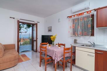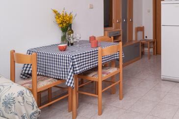 Ferienwohnung bietet Platz für 5 Gäste. Die Betten sind in Schlafzimmern, die es 2 gibt, und in Wohnzimmer, innerhalb einer Gesamtfläche von 42m2, angeordnet. Die Gäste haben eine eigene Terrasse zur Verfügung, auf der sie in warmen Sommernächten genießen können. Das Apartment bietet Meerblick. Es ist erlaubt, Speisen auf dem Gemeinschafts-Grill vorzubereiten. In der Unterkunftseinheit besteht die Möglichkeit des Mitbringens von Haustieren gegen Aufpreis.