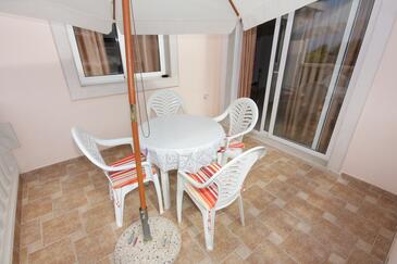 Ferienwohnung bietet Platz für 2 Gäste. Die Betten sind in Schlafzimmern, die es 1 gibt, innerhalb einer Gesamtfläche von 30m2, angeordnet. Die Gäste haben eine eigene Terrasse zur Verfügung, auf der sie in warmen Sommernächten genießen können. Das Apartment bietet Meerblick. Es ist erlaubt, Speisen auf dem Gemeinschafts-Grill vorzubereiten.