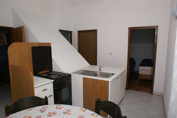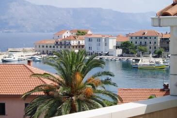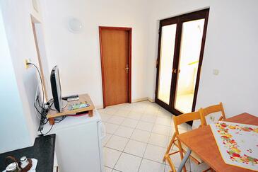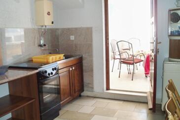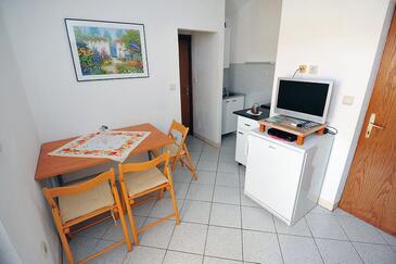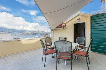 Ferienwohnung bietet Platz für 5 Gäste. Die Betten sind in Schlafzimmern, die es 3 gibt, innerhalb einer Gesamtfläche von 87m2, angeordnet. Die Gäste haben eine eigene Terrasse zur Verfügung, auf der sie in warmen Sommernächten genießen können. Das Apartment bietet Meerblick. Es ist erlaubt, Speisen auf dem Gemeinschafts-Grill vorzubereiten.