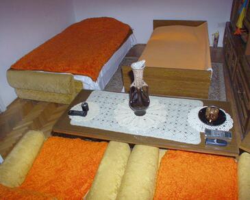 Ferienwohnung bietet Platz für 6 Gäste. Die Betten sind in Schlafzimmern, die es 3 gibt, innerhalb einer Gesamtfläche von 58m2, angeordnet. Die Gäste haben eine eigene Terrasse zur Verfügung, auf der sie in warmen Sommernächten genießen können. Das Apartment bietet Meerblick. Es ist erlaubt, Speisen auf dem Gemeinschafts-Grill vorzubereiten. Durch die Terrasse der gebuchten Unterkunftseinheit gehen auch andere Gäste oder Vermieter. Unterkunftseinheit hat Räume, die von dem Rest der Einheit abgetrennt werden.