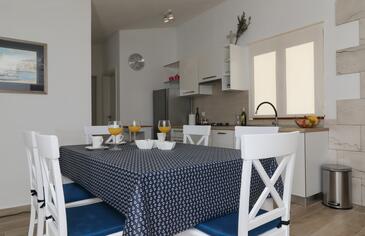 Haus bietet Platz für 5 Gäste. Die Betten sind in Schlafzimmern, die es 2 gibt, und in Wohnzimmer, innerhalb einer Gesamtfläche von 45m2, angeordnet. Die Gäste haben eine eigene Terrasse zur Verfügung, auf der sie in warmen Sommernächten genießen können. Das Haus bietet Meerblick. Für vollen Genuss und Entspannung gibt es einen privaten Grill für Gäste dieser Unterkunft. In der Unterkunftseinheit besteht die Möglichkeit des Mitbringens von Haustieren, und die Dienstleistung ist im Preis der Unterkunft enthalten.