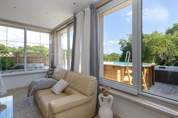 Haus bietet Platz für 6 Gäste. Die Betten sind in Schlafzimmern, die es 4 gibt, innerhalb einer Gesamtfläche von 130m2, angeordnet. Die Gäste haben eine eigene Terrasse zur Verfügung, auf der sie in warmen Sommernächten genießen können. Für vollen Genuss und Entspannung gibt es einen privaten Grill für Gäste dieser Unterkunft. Während ihres Aufenthalts können sich Gäste im privaten Schwimmbad entspannen.