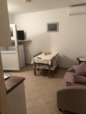 Ferienwohnung bietet Platz für 4 Gäste. Die Betten sind in Schlafzimmern, die es 2 gibt, innerhalb einer Gesamtfläche von 54m2, angeordnet. Die Gäste haben eine eigene Terrasse zur Verfügung, auf der sie in warmen Sommernächten genießen können. Das Apartment bietet Meerblick. Es ist erlaubt, Speisen auf dem Gemeinschafts-Grill vorzubereiten.