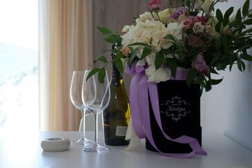 Ferienwohnung bietet Platz für 6 Gäste. Die Betten sind in Schlafzimmern, die es 3 gibt, innerhalb einer Gesamtfläche von 61m2, angeordnet. Die Gäste haben eine eigene Terrasse zur Verfügung, auf der sie in warmen Sommernächten genießen können. Das Apartment bietet Meerblick. Es ist erlaubt, Speisen auf dem Gemeinschafts-Grill vorzubereiten. Während ihres Aufenthalts können Gäste das gemeinsam zur Nutzung stehende Schwimmbad benutzen.