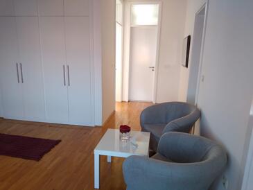 Ferienwohnung bietet Platz für 4 Gäste. Die Betten sind in Schlafzimmern, die es 2 gibt, innerhalb einer Gesamtfläche von 64m2, angeordnet. Die Gäste haben eine eigene Terrasse zur Verfügung, auf der sie in warmen Sommernächten genießen können. Das Apartment bietet Meerblick. Es ist erlaubt, Speisen auf dem Gemeinschafts-Grill vorzubereiten.