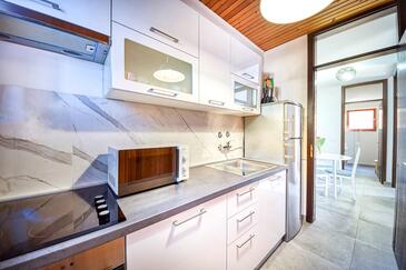 Ferienwohnung bietet Platz für 4 Gäste. Die Betten sind in Schlafzimmern, die es 2 gibt, innerhalb einer Gesamtfläche von 64m2, angeordnet. Die Gäste haben eine eigene Terrasse zur Verfügung, auf der sie in warmen Sommernächten genießen können. Das Apartment bietet Meerblick. Es ist erlaubt, Speisen auf dem Gemeinschafts-Grill vorzubereiten.
