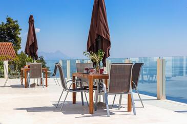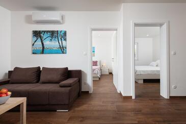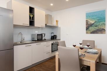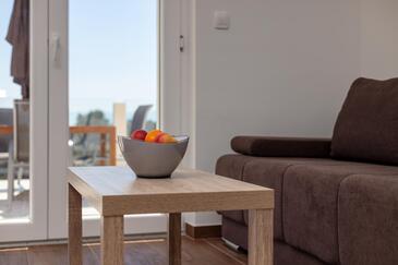Ferienwohnung bietet Platz für 6 Gäste. Die Betten sind in Schlafzimmern, die es 2 gibt, und in Wohnzimmer, innerhalb einer Gesamtfläche von 49m2, angeordnet. Die Gäste haben eine eigene Terrasse zur Verfügung, auf der sie in warmen Sommernächten genießen können. Das Apartment bietet Meerblick. Es ist erlaubt, Speisen auf dem Gemeinschafts-Grill vorzubereiten. In der Unterkunftseinheit besteht die Möglichkeit des Mitbringens von Haustieren, und die Dienstleistung ist im Preis der Unterkunft enthalten.