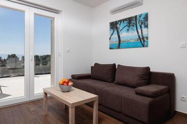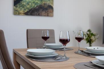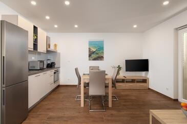 Ferienwohnung bietet Platz für 6 Gäste. Die Betten sind in Schlafzimmern, die es 2 gibt, und in Wohnzimmer, innerhalb einer Gesamtfläche von 49m2, angeordnet. Die Gäste haben eine eigene Terrasse zur Verfügung, auf der sie in warmen Sommernächten genießen können. Das Apartment bietet Meerblick. Es ist erlaubt, Speisen auf dem Gemeinschafts-Grill vorzubereiten. In der Unterkunftseinheit besteht die Möglichkeit des Mitbringens von Haustieren, und die Dienstleistung ist im Preis der Unterkunft enthalten.