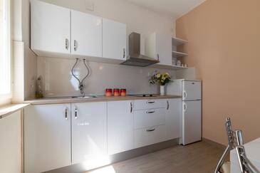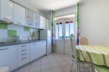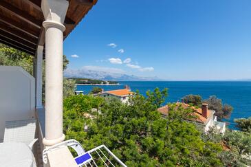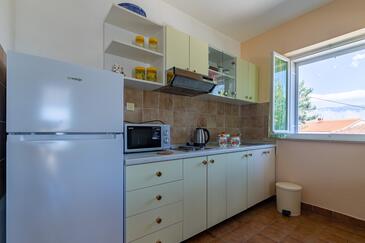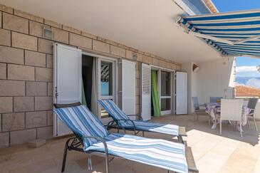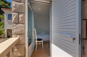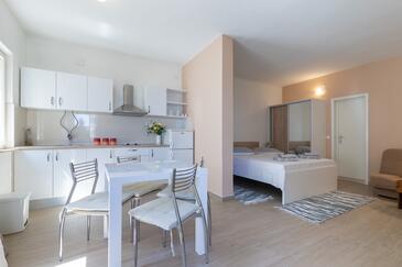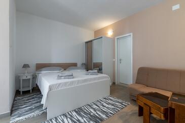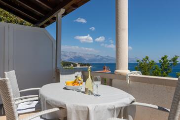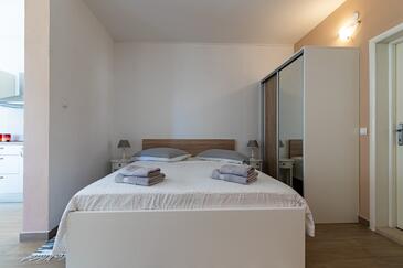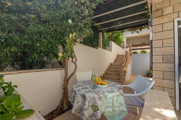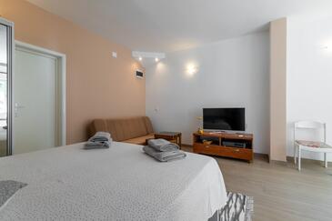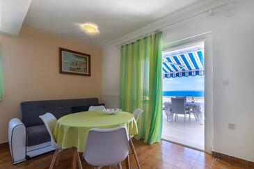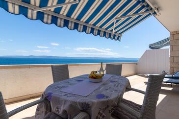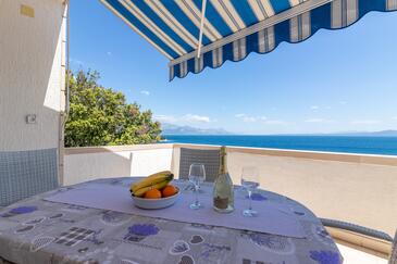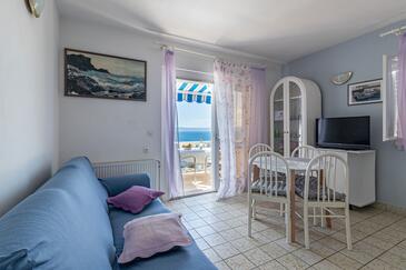 Ferienwohnung bietet Platz für 5 Gäste. Die Betten sind in Schlafzimmern, die es 2 gibt, und in Wohnzimmer, innerhalb einer Gesamtfläche von 40m2, angeordnet. Die Gäste haben eine eigene Terrasse zur Verfügung, auf der sie in warmen Sommernächten genießen können. Das Apartment bietet Meerblick. Es ist erlaubt, Speisen auf dem Gemeinschafts-Grill vorzubereiten.