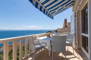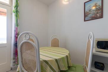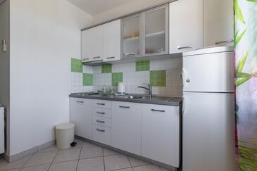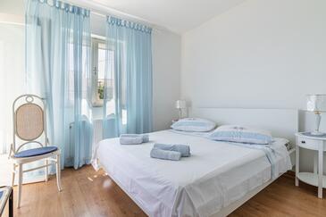 Ferienwohnung bietet Platz für 5 Gäste. Die Betten sind in Schlafzimmern, die es 2 gibt, und in Wohnzimmer, innerhalb einer Gesamtfläche von 40m2, angeordnet. Die Gäste haben eine eigene Terrasse zur Verfügung, auf der sie in warmen Sommernächten genießen können. Das Apartment bietet Meerblick. Es ist erlaubt, Speisen auf dem Gemeinschafts-Grill vorzubereiten.