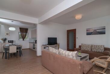 Haus bietet Platz für 8 Gäste. Die Betten sind in Schlafzimmern, die es 3 gibt, und in Wohnzimmer, innerhalb einer Gesamtfläche von 115m2, angeordnet. Die Gäste haben eine eigene Terrasse zur Verfügung, auf der sie in warmen Sommernächten genießen können. Das Haus bietet Meerblick. Für vollen Genuss und Entspannung gibt es einen privaten Grill für Gäste dieser Unterkunft. Während ihres Aufenthalts können sich Gäste im privaten Schwimmbad entspannen.