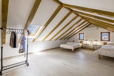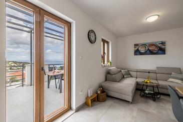 Ferienwohnung bietet Platz für 6 Gäste. Die Betten sind in Schlafzimmern, die es 3 gibt, innerhalb einer Gesamtfläche von 105m2, angeordnet. Die Gäste haben eine eigene Terrasse zur Verfügung, auf der sie in warmen Sommernächten genießen können. Das Apartment bietet Meerblick. Es ist erlaubt, Speisen auf dem Gemeinschafts-Grill vorzubereiten.