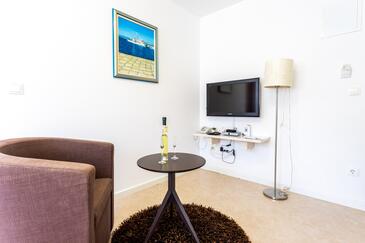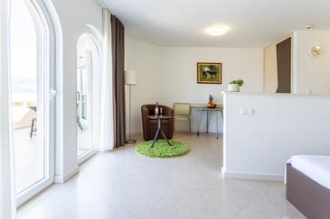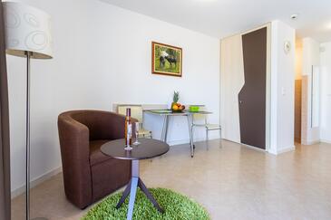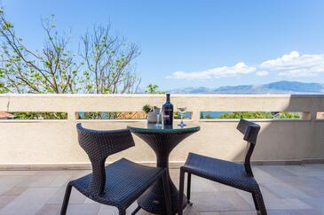 Ferienwohnung bietet Platz für 2 Gäste. Die Betten sind in Schlafzimmern, die es 2 gibt, innerhalb einer Gesamtfläche von 51m2, angeordnet. Die Gäste haben eine eigene Terrasse zur Verfügung, auf der sie in warmen Sommernächten genießen können. Das Apartment bietet Meerblick. Es ist erlaubt, Speisen auf dem Gemeinschafts-Grill vorzubereiten. Während ihres Aufenthalts können Gäste das gemeinsam zur Nutzung stehende Schwimmbad benutzen.