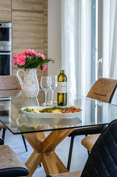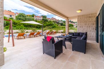 Haus bietet Platz für 16 Gäste. Die Betten sind in Schlafzimmern, die es 6 gibt, und in Wohnzimmer, innerhalb einer Gesamtfläche von 231m2, angeordnet. Die Gäste haben eine eigene Terrasse zur Verfügung, auf der sie in warmen Sommernächten genießen können. Das Haus bietet Meerblick. Für vollen Genuss und Entspannung gibt es einen privaten Grill für Gäste dieser Unterkunft. Während ihres Aufenthalts können sich Gäste im privaten Schwimmbad entspannen. In der Unterkunftseinheit besteht die Möglichkeit des Mitbringens von Haustieren gegen Aufpreis. Räume der gebuchten Unterkunftseinheit werden nicht in eine Ganze verbunden. In der gebuchten Unterkunftseinheit zahlt man am Ort ein Depositum ( der Preis ist an der Internetseite angeführt ).