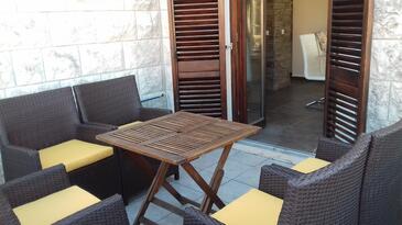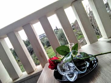 Ferienwohnung bietet Platz für 4 Gäste. Die Betten sind in Schlafzimmern, die es 2 gibt, innerhalb einer Gesamtfläche von 60m2, angeordnet. Die Gäste haben eine eigene Terrasse zur Verfügung, auf der sie in warmen Sommernächten genießen können. Es ist erlaubt, Speisen auf dem Gemeinschafts-Grill vorzubereiten.