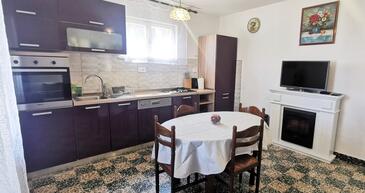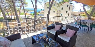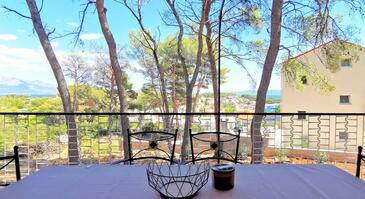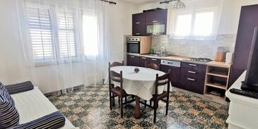 Haus bietet Platz für 6 Gäste. Die Betten sind in Schlafzimmern, die es 2 gibt, und in Wohnzimmer, innerhalb einer Gesamtfläche von 72m2, angeordnet. Die Gäste haben eine eigene Terrasse zur Verfügung, auf der sie in warmen Sommernächten genießen können. Das Haus bietet Meerblick. Es ist erlaubt, Speisen auf dem Gemeinschafts-Grill vorzubereiten.