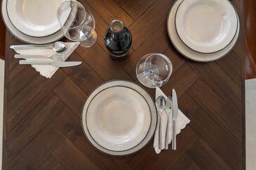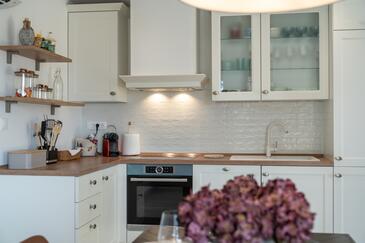 Haus bietet Platz für 8 Gäste. Die Betten sind in Schlafzimmern, die es 3 gibt, innerhalb einer Gesamtfläche von 125m2, angeordnet. Die Gäste haben eine eigene Terrasse zur Verfügung, auf der sie in warmen Sommernächten genießen können. Das Haus bietet Meerblick. Für vollen Genuss und Entspannung gibt es einen privaten Grill für Gäste dieser Unterkunft. Während ihres Aufenthalts können sich Gäste im privaten Schwimmbad entspannen. In der Unterkunftseinheit besteht die Möglichkeit des Mitbringens von Haustieren, und die Dienstleistung ist im Preis der Unterkunft enthalten.