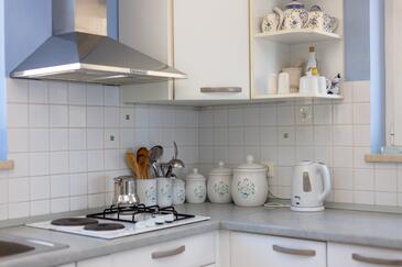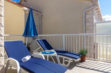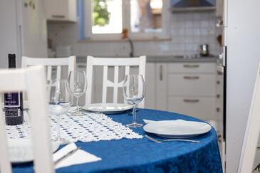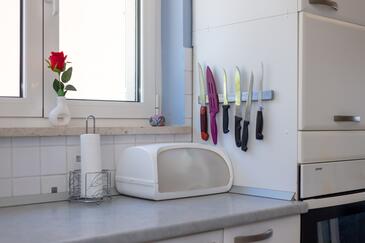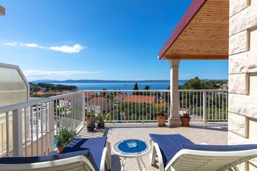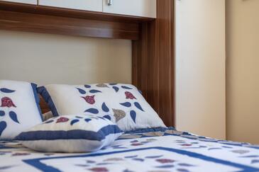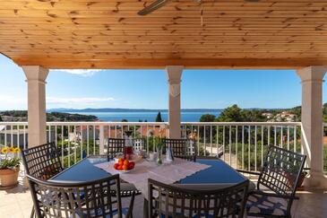 Ferienwohnung bietet Platz für 8 Gäste. Die Betten sind in Schlafzimmern, die es 3 gibt, und in Wohnzimmer, innerhalb einer Gesamtfläche von 99m2, angeordnet. Die Gäste haben eine eigene Terrasse zur Verfügung, auf der sie in warmen Sommernächten genießen können. Das Apartment bietet Meerblick. Es ist erlaubt, Speisen auf dem Gemeinschafts-Grill vorzubereiten.