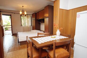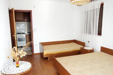 Ferienwohnung bietet Platz für 7 Gäste. Die Betten sind in Schlafzimmern, die es 3 gibt, innerhalb einer Gesamtfläche von 57m2, angeordnet. Die Gäste haben eine eigene Terrasse zur Verfügung, auf der sie in warmen Sommernächten genießen können. Das Apartment bietet Meerblick. Es ist erlaubt, Speisen auf dem Gemeinschafts-Grill vorzubereiten. In der Unterkunftseinheit besteht die Möglichkeit des Mitbringens von Haustieren gegen Aufpreis. Unterkunftseinheit hat Räume, die von dem Rest der Einheit abgetrennt werden.