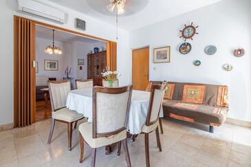 Ferienwohnung bietet Platz für 8 Gäste. Die Betten sind in Schlafzimmern, die es 3 gibt, und in Wohnzimmer, innerhalb einer Gesamtfläche von 90m2, angeordnet. Die Gäste haben eine eigene Terrasse zur Verfügung, auf der sie in warmen Sommernächten genießen können. Es ist erlaubt, Speisen auf dem Gemeinschafts-Grill vorzubereiten.