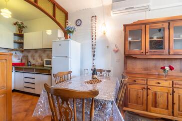 Ferienwohnung bietet Platz für 5 Gäste. Die Betten sind in Schlafzimmern, die es 2 gibt, und in Wohnzimmer, innerhalb einer Gesamtfläche von 53m2, angeordnet. Die Gäste haben eine eigene Terrasse zur Verfügung, auf der sie in warmen Sommernächten genießen können. Es ist erlaubt, Speisen auf dem Gemeinschafts-Grill vorzubereiten.