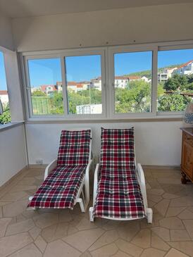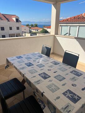 Ferienwohnung bietet Platz für 6 Gäste. Die Betten sind in Schlafzimmern, die es 3 gibt, innerhalb einer Gesamtfläche von 75m2, angeordnet. Die Gäste haben eine eigene Terrasse zur Verfügung, auf der sie in warmen Sommernächten genießen können. Das Apartment bietet Meerblick. Es ist erlaubt, Speisen auf dem Gemeinschafts-Grill vorzubereiten.