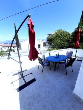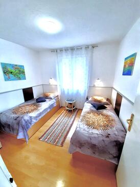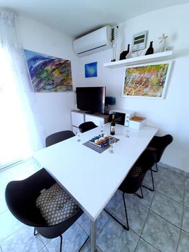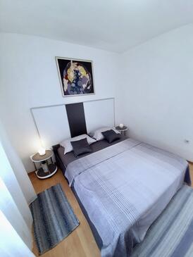 Ferienwohnung bietet Platz für 4 Gäste. Die Betten sind in Schlafzimmern, die es 2 gibt, innerhalb einer Gesamtfläche von 50m2, angeordnet. Die Gäste haben eine eigene Terrasse zur Verfügung, auf der sie in warmen Sommernächten genießen können. Das Apartment bietet Meerblick. Es ist erlaubt, Speisen auf dem Gemeinschafts-Grill vorzubereiten.