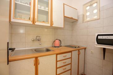 Ferienwohnung bietet Platz für 6 Gäste. Die Betten sind in Schlafzimmern, die es 2 gibt, innerhalb einer Gesamtfläche von 66m2, angeordnet. Die Gäste haben einen eigenen Balkon zur Verfügung, auf der sie in warmen Sommernächten genießen können. Das Apartment bietet Meerblick. Es ist erlaubt, Speisen auf dem Gemeinschafts-Grill vorzubereiten.