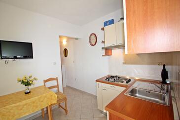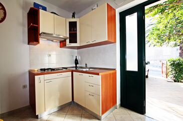 Ferienwohnung bietet Platz für 3 Gäste. Die Betten sind in Schlafzimmern, die es 1 gibt, innerhalb einer Gesamtfläche von 34m2, angeordnet. Die Gäste haben eine eigene Terrasse zur Verfügung, auf der sie in warmen Sommernächten genießen können.