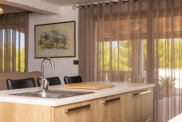 Haus bietet Platz für 7 Gäste. Die Betten sind in Schlafzimmern, die es 4 gibt, innerhalb einer Gesamtfläche von 115m2, angeordnet. Die Gäste haben eine eigene Terrasse zur Verfügung, auf der sie in warmen Sommernächten genießen können. Das Haus bietet Meerblick. Für vollen Genuss und Entspannung gibt es einen privaten Grill für Gäste dieser Unterkunft. Während ihres Aufenthalts können sich Gäste im privaten Schwimmbad entspannen.