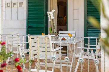 Ferienwohnung bietet Platz für 8 Gäste. Die Betten sind in Schlafzimmern, die es 3 gibt, und in Wohnzimmer, innerhalb einer Gesamtfläche von 68m2, angeordnet. Die Gäste haben eine eigene Terrasse zur Verfügung, auf der sie in warmen Sommernächten genießen können. Das Apartment bietet Meerblick. Für vollen Genuss und Entspannung gibt es einen privaten Grill für Gäste dieser Unterkunft.