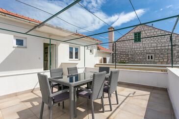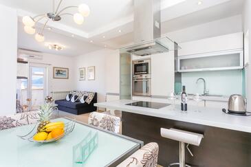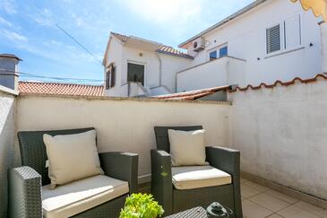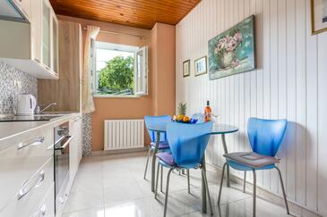 Ferienwohnung bietet Platz für 4 Gäste. Die Betten sind in Schlafzimmern, die es 2 gibt, innerhalb einer Gesamtfläche von 50m2, angeordnet. Die Gäste haben eine eigene Terrasse zur Verfügung, auf der sie in warmen Sommernächten genießen können. Es ist erlaubt, Speisen auf dem Gemeinschafts-Grill vorzubereiten.