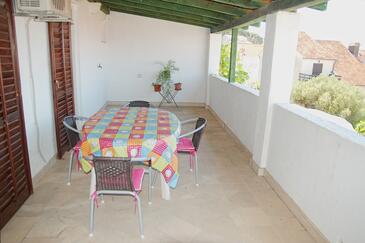 Ferienwohnung bietet Platz für 6 Gäste. Die Betten sind in Schlafzimmern, die es 2 gibt, und in Wohnzimmer, innerhalb einer Gesamtfläche von 68m2, angeordnet. Die Gäste haben eine eigene Terrasse zur Verfügung, auf der sie in warmen Sommernächten genießen können. Es ist erlaubt, Speisen auf dem Gemeinschafts-Grill vorzubereiten. In der Unterkunftseinheit besteht die Möglichkeit des Mitbringens von Haustieren gegen Aufpreis.