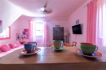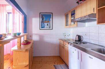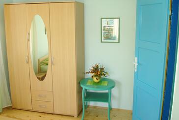 Ferienwohnung bietet Platz für 4 Gäste. Die Betten sind in Schlafzimmern, die es 2 gibt, innerhalb einer Gesamtfläche von 64m2, angeordnet. Die Gäste haben eine eigene Terrasse zur Verfügung, auf der sie in warmen Sommernächten genießen können. Es ist erlaubt, Speisen auf dem Gemeinschafts-Grill vorzubereiten.