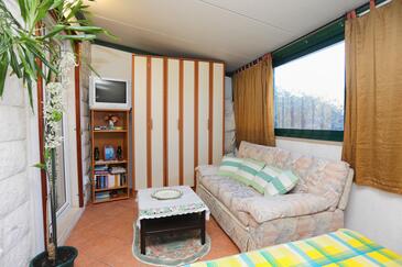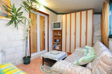 Ferienwohnung bietet Platz für 6 Gäste. Die Betten sind in Schlafzimmern, die es 3 gibt, und in Wohnzimmer, innerhalb einer Gesamtfläche von 48m2, angeordnet. Die Gäste haben eine eigene Terrasse zur Verfügung, auf der sie in warmen Sommernächten genießen können. Für vollen Genuss und Entspannung gibt es einen privaten Grill für Gäste dieser Unterkunft. In der Unterkunftseinheit besteht die Möglichkeit des Mitbringens von Haustieren gegen Aufpreis. Durch das Schlafzimmer der gebuchten Unterkunftseinheit geht man in die andere Räume der Einheit.