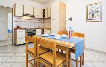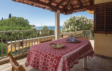 Ferienwohnung bietet Platz für 5 Gäste. Die Betten sind in Schlafzimmern, die es 2 gibt, innerhalb einer Gesamtfläche von 63m2, angeordnet. Die Gäste haben eine eigene Terrasse zur Verfügung, auf der sie in warmen Sommernächten genießen können. Das Apartment bietet Meerblick. Es ist erlaubt, Speisen auf dem Gemeinschafts-Grill vorzubereiten.