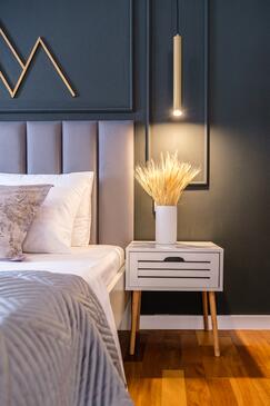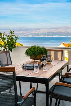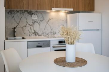 Ferienwohnung bietet Platz für 6 Gäste. Die Betten sind in Schlafzimmern, die es 2 gibt, und in Wohnzimmer, innerhalb einer Gesamtfläche von 75m2, angeordnet. Die Gäste haben eine eigene Terrasse zur Verfügung, auf der sie in warmen Sommernächten genießen können. Das Apartment bietet Meerblick. Für vollen Genuss und Entspannung gibt es einen privaten Grill für Gäste dieser Unterkunft.