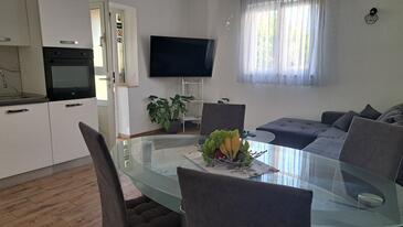 Ferienwohnung bietet Platz für 5 Gäste. Die Betten sind in Schlafzimmern, die es 1 gibt, und in Wohnzimmer, innerhalb einer Gesamtfläche von 55m2, angeordnet. Die Gäste haben eine eigene Terrasse zur Verfügung, auf der sie in warmen Sommernächten genießen können. Es ist erlaubt, Speisen auf dem Gemeinschafts-Grill vorzubereiten. In der Unterkunftseinheit besteht die Möglichkeit des Mitbringens von Haustieren gegen Aufpreis.