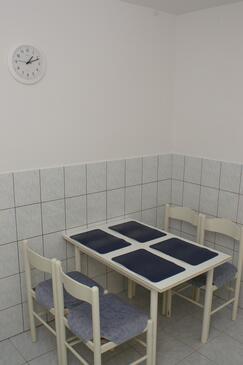 Ferienwohnung bietet Platz für 10 Gäste. Die Betten sind in Schlafzimmern, die es 5 gibt, innerhalb einer Gesamtfläche von 98m2, angeordnet. Die Gäste haben eine eigene Terrasse zur Verfügung, auf der sie in warmen Sommernächten genießen können. Das Apartment bietet Meerblick. Es ist erlaubt, Speisen auf dem Gemeinschafts-Grill vorzubereiten.
