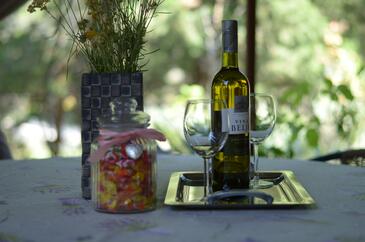 Haus bietet Platz für 2 Gäste. Die Betten sind in Schlafzimmern, die es 1 gibt, innerhalb einer Gesamtfläche von 26m2, angeordnet. Die Gäste haben eine eigene Terrasse zur Verfügung, auf der sie in warmen Sommernächten genießen können. Für vollen Genuss und Entspannung gibt es einen privaten Grill für Gäste dieser Unterkunft. In der Unterkunftseinheit besteht die Möglichkeit des Mitbringens von Haustieren gegen Aufpreis.