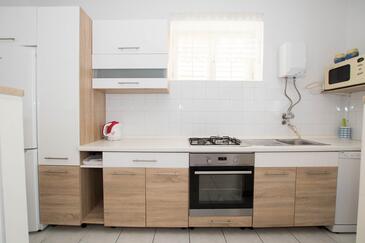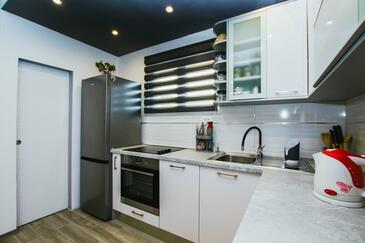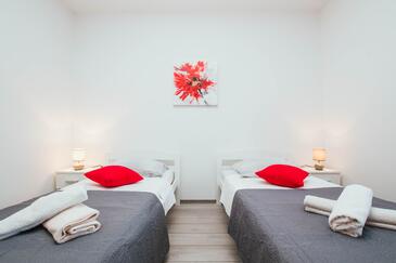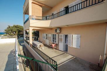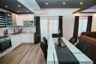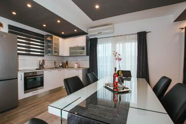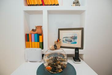 Ferienwohnung bietet Platz für 8 Gäste. Die Betten sind in Schlafzimmern, die es 4 gibt, innerhalb einer Gesamtfläche von 108m2, angeordnet. Die Gäste haben eine eigene Terrasse zur Verfügung, auf der sie in warmen Sommernächten genießen können. Das Apartment bietet Meerblick. Es ist erlaubt, Speisen auf dem Gemeinschafts-Grill vorzubereiten.
