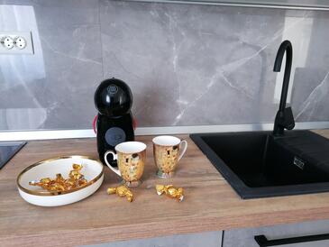 Ferienwohnung bietet Platz für 7 Gäste. Die Betten sind in Schlafzimmern, die es 3 gibt, innerhalb einer Gesamtfläche von 96m2, angeordnet. Die Gäste haben eine eigene Terrasse zur Verfügung, auf der sie in warmen Sommernächten genießen können. Es ist erlaubt, Speisen auf dem Gemeinschafts-Grill vorzubereiten. In der Unterkunftseinheit besteht die Möglichkeit des Mitbringens von Haustieren gegen Aufpreis.