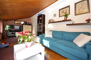 Ferienwohnung bietet Platz für 6 Gäste. Die Betten sind in Schlafzimmern, die es 3 gibt, innerhalb einer Gesamtfläche von 95m2, angeordnet. Die Gäste haben eine eigene Terrasse zur Verfügung, auf der sie in warmen Sommernächten genießen können. Das Apartment bietet Meerblick. Es ist erlaubt, Speisen auf dem Gemeinschafts-Grill vorzubereiten.
