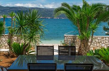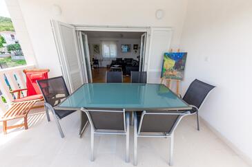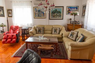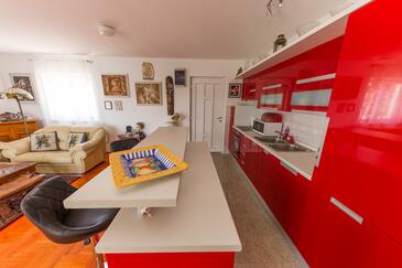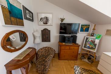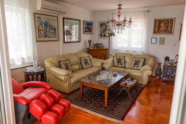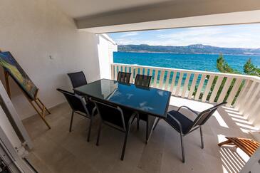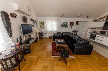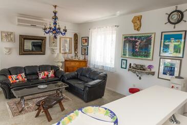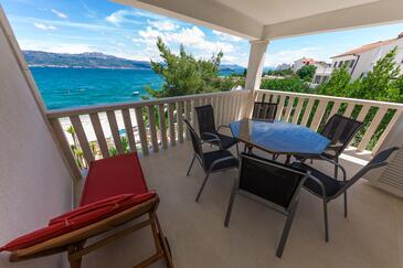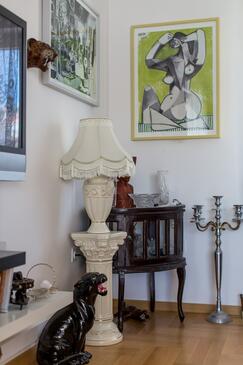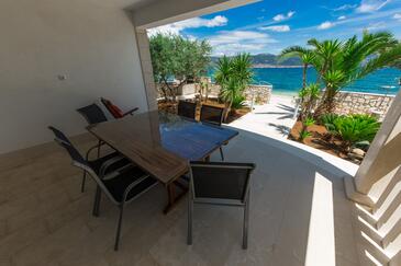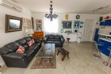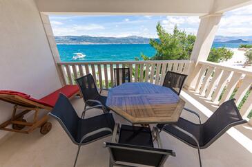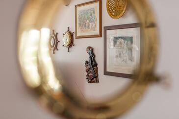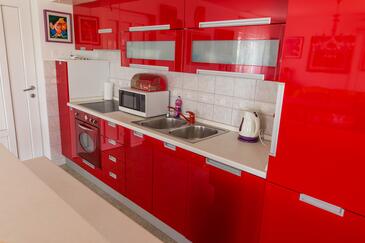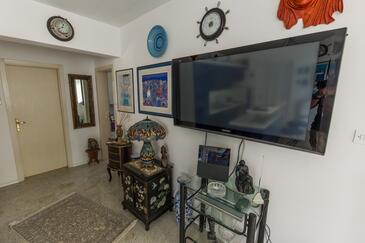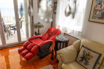 Ferienwohnung bietet Platz für 5 Gäste. Die Betten sind in Schlafzimmern, die es 2 gibt, innerhalb einer Gesamtfläche von 85m2, angeordnet. Die Gäste haben eine eigene Terrasse zur Verfügung, auf der sie in warmen Sommernächten genießen können. Das Apartment bietet Meerblick. Es ist erlaubt, Speisen auf dem Gemeinschafts-Grill vorzubereiten. In der gebuchten Unterkunftseinheit zahlt man am Ort ein Depositum ( der Preis ist an der Internetseite angeführt ).